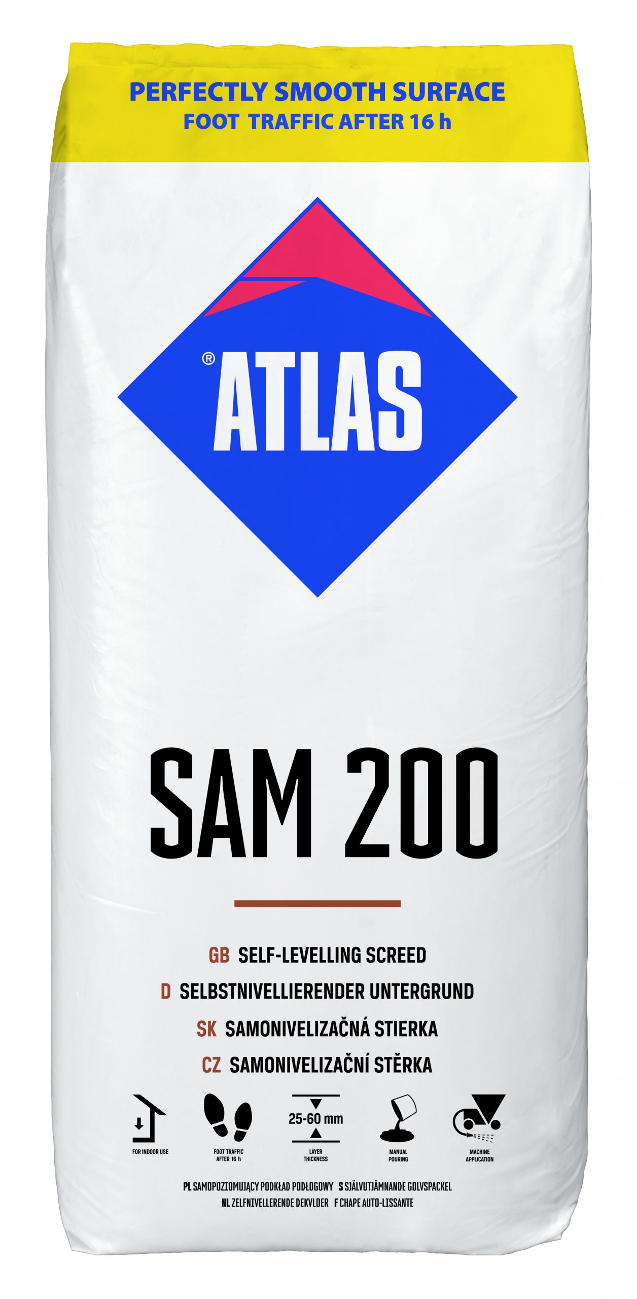 Das Produkt ATLAS SAM 200 wird als Trockengemisch auf Calciumsulfatbasis hergestellt.