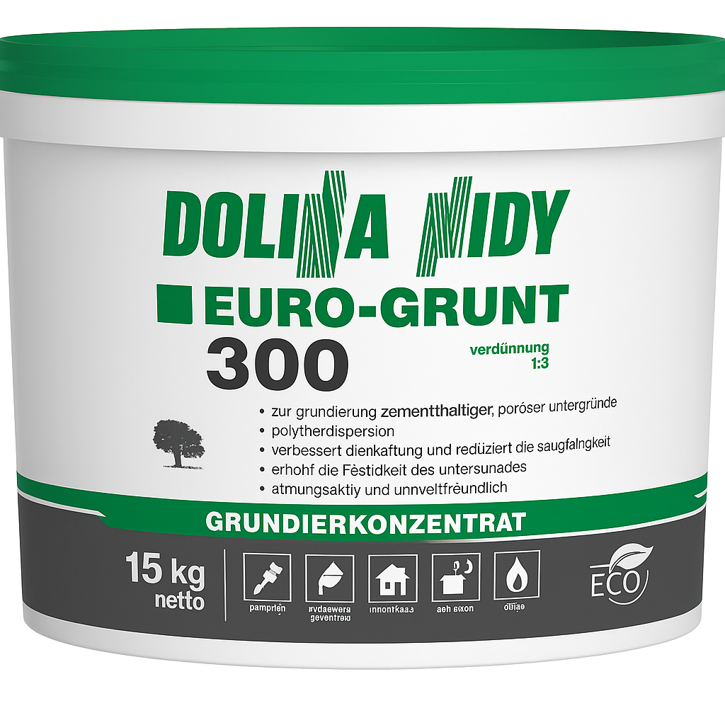 Das WEISSE GRUNDIERMITTEL GRUNT-FARBA ist für die angemessene Vorbereitung von mineralischen Untergründen vor dem Auftragen von Deckanstrichen in Innenräumen bestimmt. Es kann sowohl für Erstanstriche (auf frischen, jedoch gut ausgehärteten Untergründen) als auch für Renovierungsanstriche (auf alten Anstrichen) eingesetzt werden. Es empfiehlt sich vor allem für Gipsuntergründe (Putze, Spachtelmassen, Feinputze, Gipskartonplatten) sowie für Kalkzement- und Zementputze. Es eignet sich ebenfalls für Beton sowie für unverputzte Mauern aus Ziegelsteinen, Blöcken, keramischen Lochziegeln, Silikat- und Betonziegeln. Das Präparat ist in weißer Farbe erhältlich, kann aber in Abstimmung auf den Deckanstrich mit auf dem Markt erhältlichen universellen, wasserlöslichen Pigmenten vorgefärbt werden. Das Präparat kann von Hand oder maschinell mit Spritzgeräten für Anstriche aufgetragen werden.