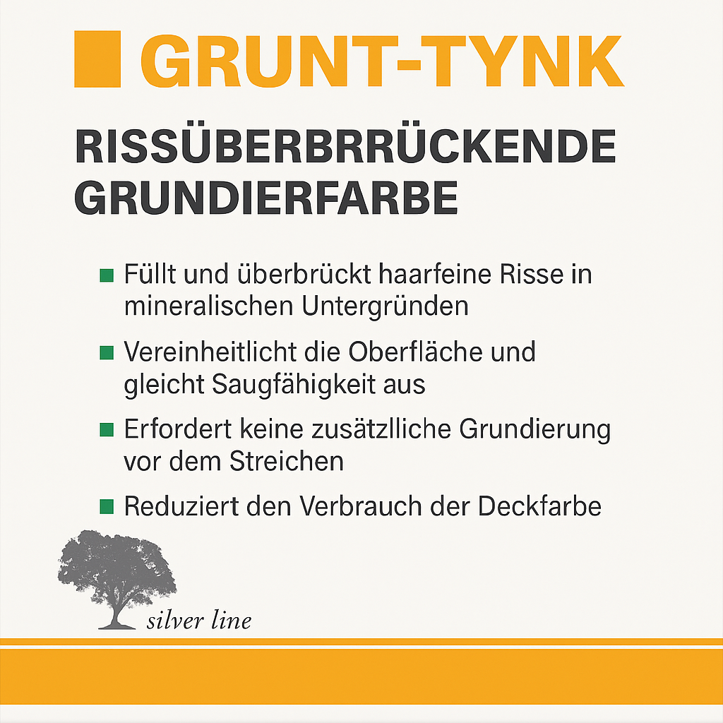 Die FÜLL- UND GRUNDIERFARBE GRUNT–TYNK ist als füllender Anstrich zur Egalisierung von gerissenen mineralischen Untergründen bestimmt.